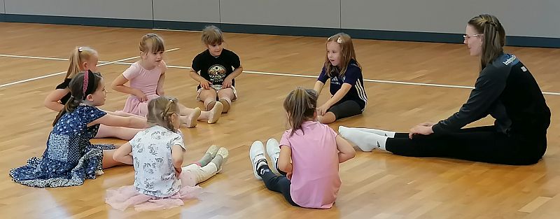 Die Flöhchen lernen sich zur Musik zu bewegen, haben Spass und freuen sich, gemeinsam die ersten Erfahrungen zu machen. Gymnastik, Dehnungsübungen und erste Versuche, sich mit Bewegungen auszudrücken, sind genau so wichtig wie das Hören der Musik und eines Taktes.
